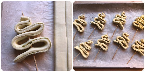 Bereiding van de bladerdeeg kerstboompjes