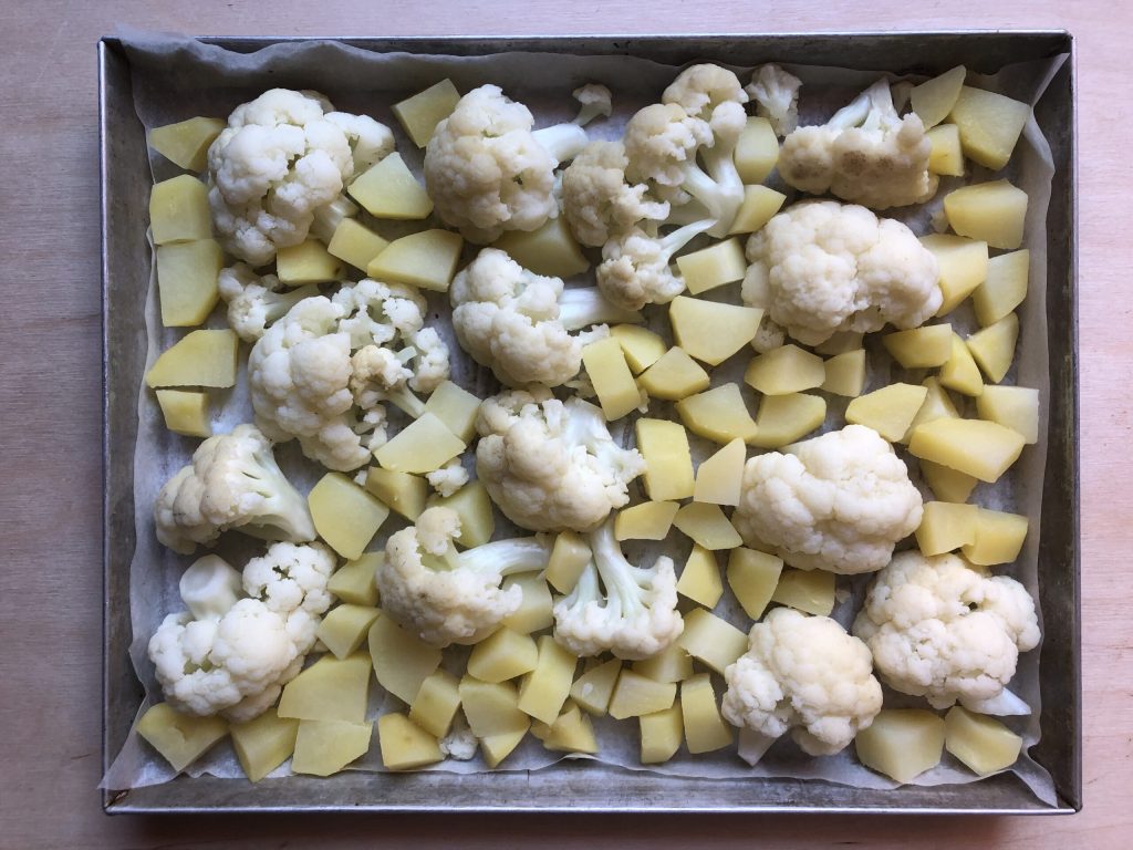 Voorbereiding van bloemkool en aardappelen op boerenwijze