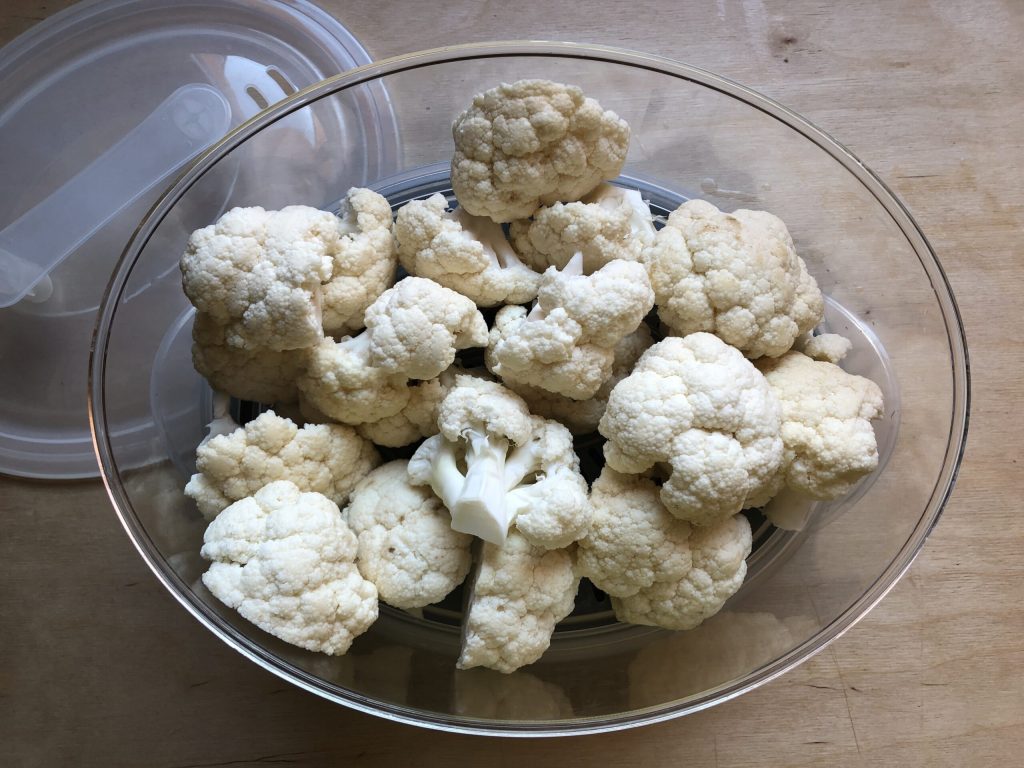 Reinig de bloemkool, was deze grondig onder stromend water en verdeel deze in roosjes, waarbij u de grotere doormidden snijdt. Kook ze vervolgens ongeveer 15/18 minuten op stoom: ze moeten zacht zijn, maar nog steeds krokant, houd ze na 15 minuten goed in de gaten.