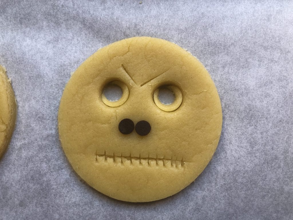 En hier zijn nog meer koekjes om te maken voor de nacht van Trick or Treat. Ik heb ze boze koekjes genoemd en de reden lijkt me vrij duidelijk, aangezien het gaat om boze gezichtjes (angry betekent in het Engels letterlijk “boos”). Ze zijn gemaakt met hetzelfde deeg als de ghost cookies en zijn net zo gemakkelijk en leuk om te maken. Juist om deze reden kunt u overwegen uw kinderen erbij te betrekken. Zoals gezegd is het deeg hetzelfde, dus u kunt ook overwegen het in tweeën te delen en beide koekjes tegelijkertijd te maken.