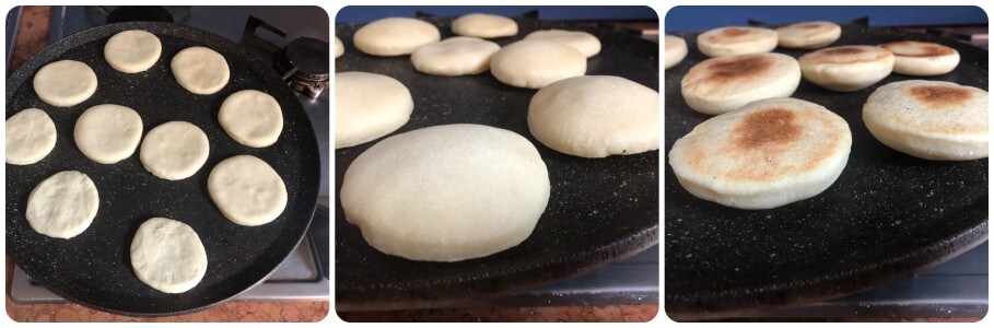 Na de tweede rijstijd, verwarm een gietijzeren plaat of een anti-aanbakpan goed en bak de broodjes een paar minuten aan elke kant.