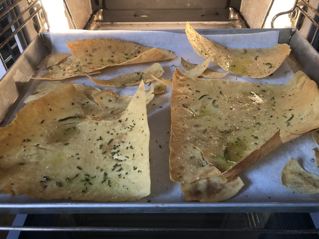 Ik heb de hoeveelheid ingrediënten niet gespecificeerd omdat het afhangt van hoeveel carasau chips je wilt maken. Als je het recept leest, zul je merken dat alles gerust ‘op het oog’ gedoseerd kan worden.