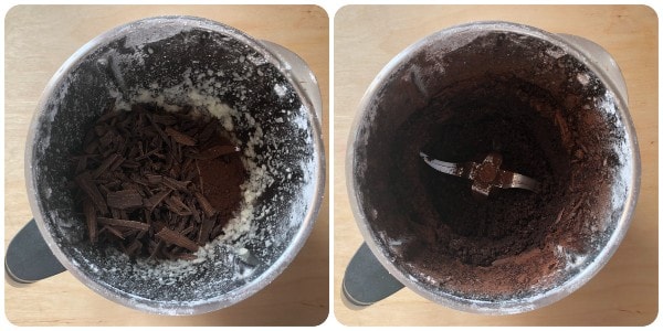 Ik heb deze chocoladesalami met stippen gemaakt met de Thermomix, maar je kunt het ook gewoon met de hand doen. Je hoeft alleen maar de ingrediënten in een kom te mengen in dezelfde volgorde als in het Thermomix-proces.