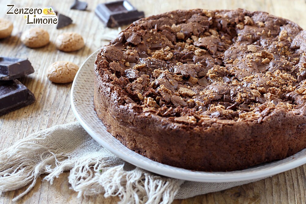 Verdeel tenslotte over het hele oppervlak de in grove stukken gesneden melkchocolade en de verkruimelde amaretti.