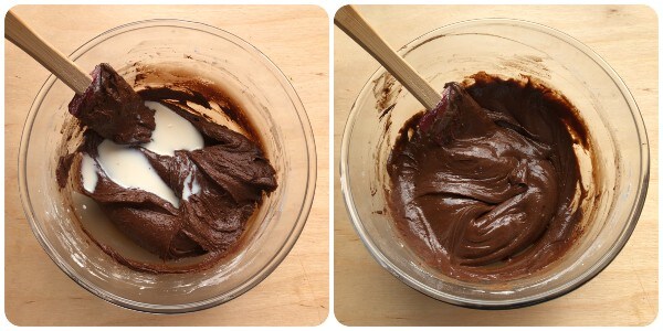 Maak het mengsel zachter met de melk door te roeren met de spatel.