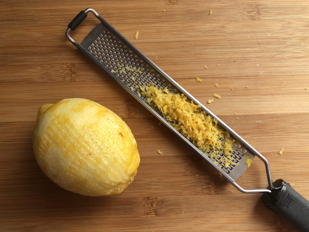Was de citroen goed en rasp de schil met een citrusrasp.