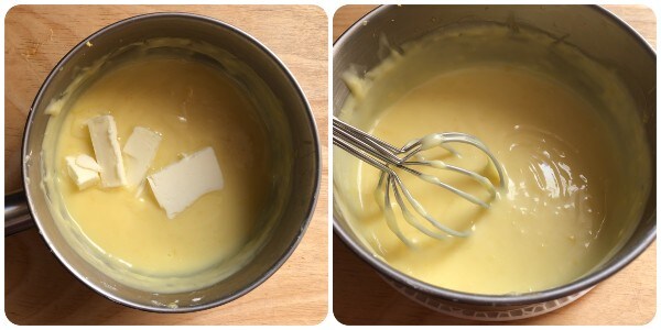 Dek de citroencrème tenslotte af met plasticfolie in contact en laat deze op kamertemperatuur afkoelen terwijl je doorgaat met de rest van de bereiding.