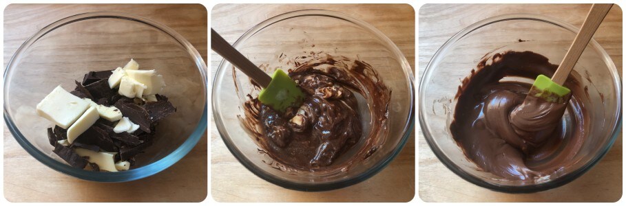 • Doe ze in een kom, voeg de boter toe en smelt alles au bain-marie of in de magnetron.