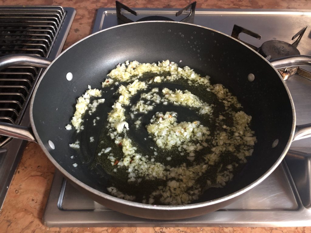 • Verhit in een ruime pan een paar eetlepels olie voordat u de ui en een snufje chilipeper toevoegt (u kunt deze naar smaak doseren).