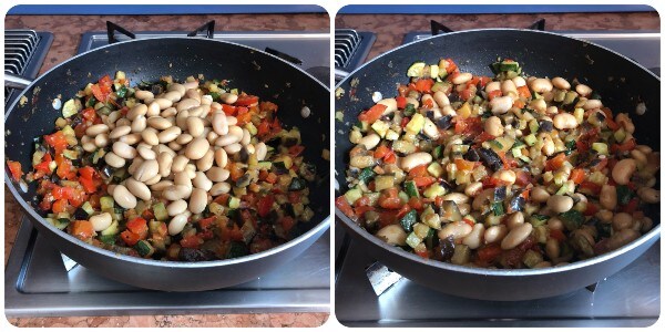 • Voeg ten slotte de bonen toe aan de groenten, meng voorzichtig en breng indien nodig op smaak met zout en peper. Laat het geheel een paar minuten zachtjes pruttelen.