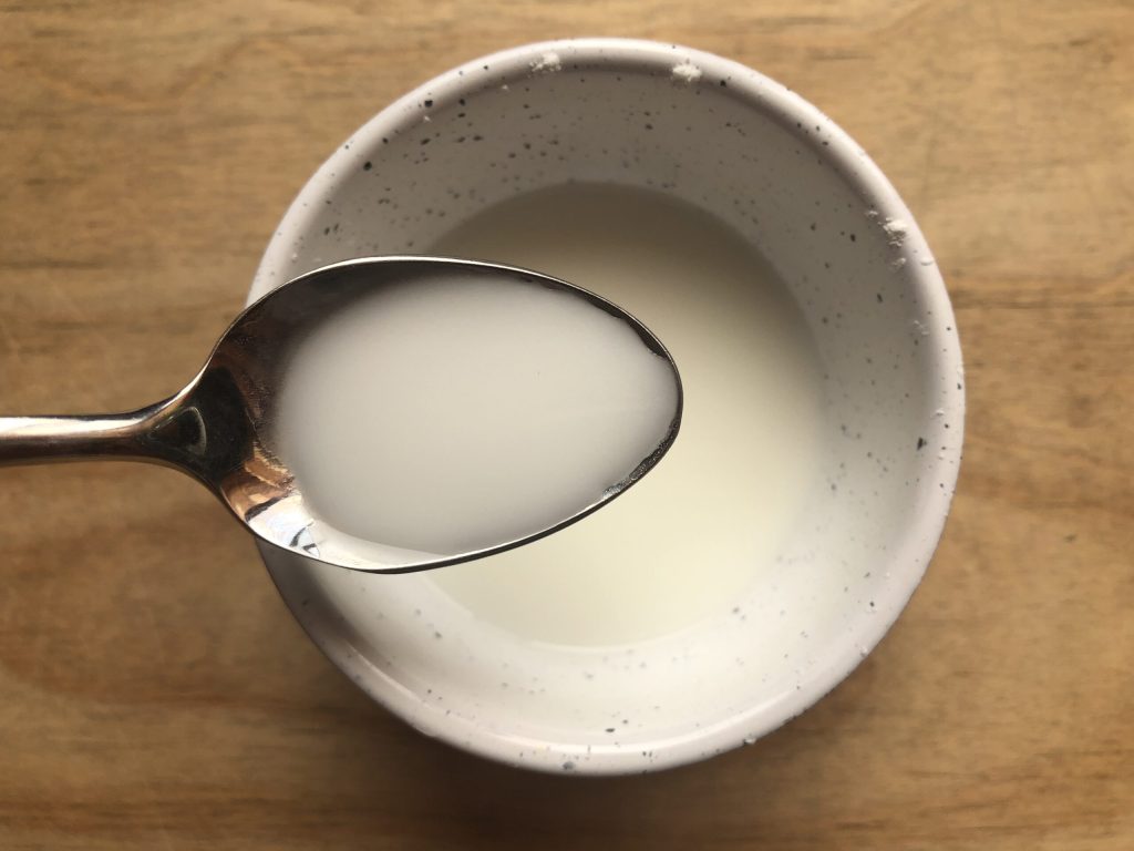 Los ondertussen het maïszetmeel op in 3 eetlepels water in een klein kommetje en zet apart.