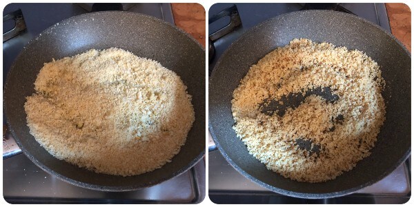 • Verhit een scheutje olie in een kleine koekenpan en toast hierin het gehakte mengsel tot het goudbruin en krokant is.