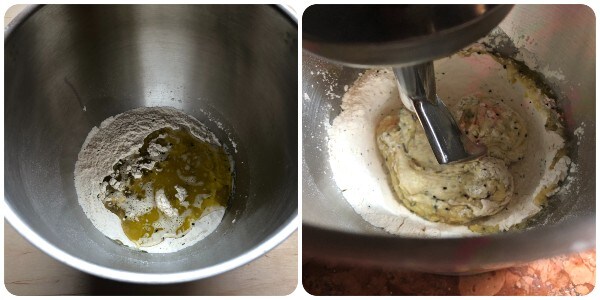 Ik heb het deeg voor deze grissini zonder rijzen met de keukenmachine gemaakt, maar je kunt elke andere mixer gebruiken en je kunt ook met de hand kneden door de ingrediënten eerst in een kom te mengen en daarna op het werkblad.