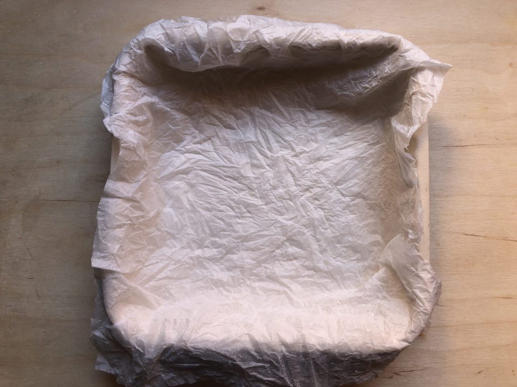 Bekleed de taartvorm met bakpapier dat eerder is natgemaakt en uitgewrongen.