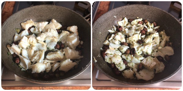 Bereiding van kabeljauw met olijven