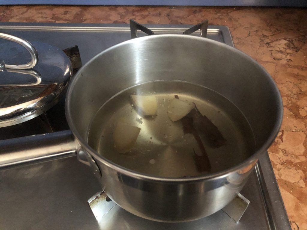 Doe het water in een steelpan samen met een stuk kaneel. Dek af en breng aan de kook.
