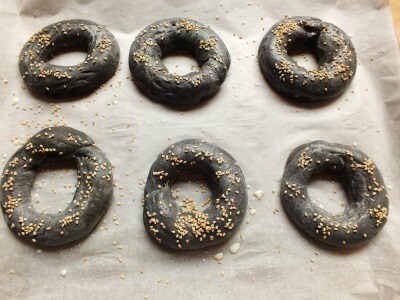 • Leg de koolstofbrood donuts een voor een op de met bakpapier beklede bakplaat, dek ze af met een doek en laat ze opnieuw rijzen tot bijna verdubbeld.