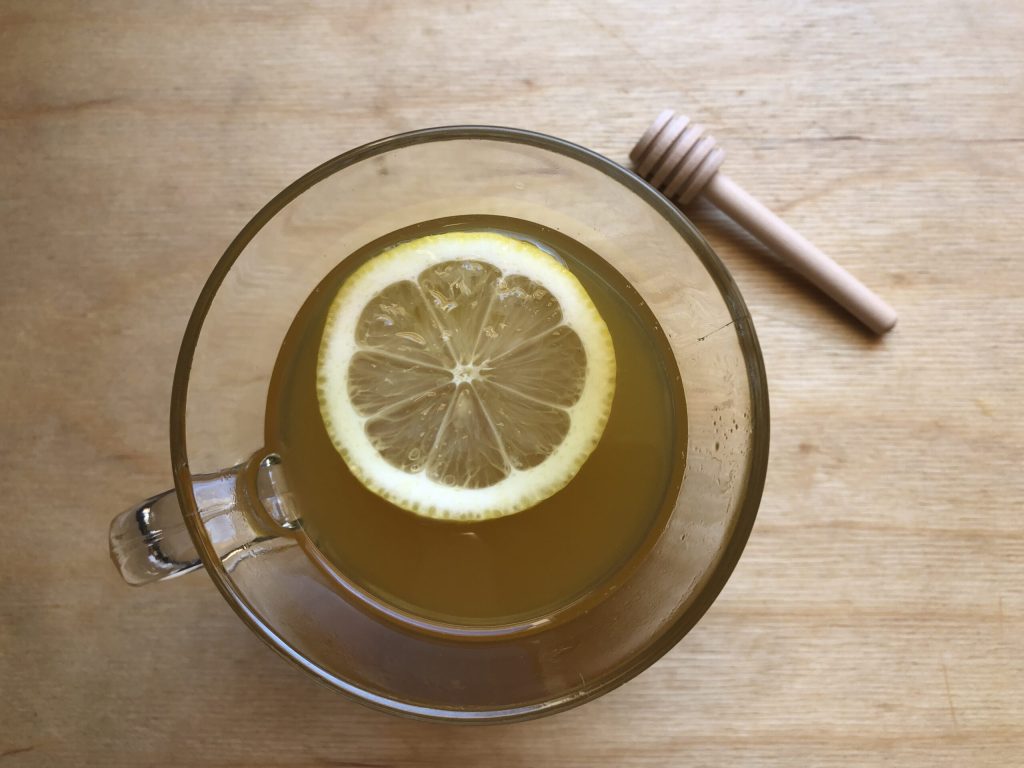 Laat het lichtjes afkoelen, voeg dan een theelepel honing en een schijfje citroen toe.