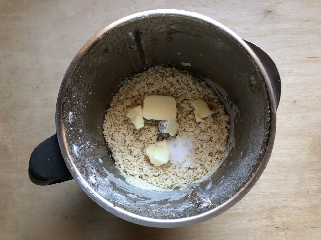 • Het is tijd om de boter in stukjes en het zout toe te voegen. Kneed opnieuw (nog 2 minuten altijd op Spiga-snelheid).