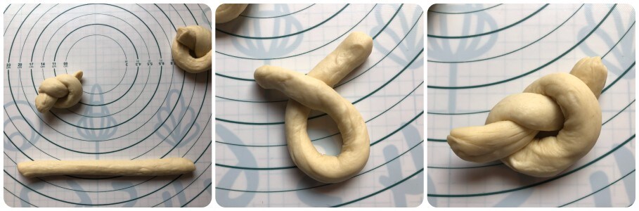 Vorm van elk stukje een rolletje door het over het werkblad te rollen en vouw het in een knoop.