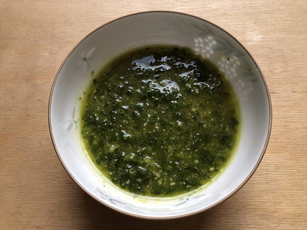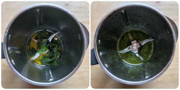 Ik heb de groene saus gemaakt met de Bimby, maar je kunt hem ook gemakkelijk met elke andere blender of mixer maken door dezelfde stappen te volgen.