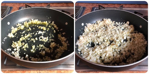Fruit ze een paar minuten, onder voortdurend roeren, voeg dan de rijst toe en laat deze een minuutje roosteren.