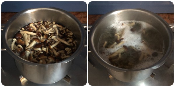 Breng ondertussen ruim water aan de kook zonder zout toe te voegen. Wanneer het kookt, doe je de chiodini erin, wacht tot het water opnieuw kookt en reken vanaf dat moment 15 minuten. Ik zeg er meteen bij dat ze veel schuim zullen geven en dat is volkomen normaal. Ze geven water en onzuiverheden af en zullen iets in volume krimpen.