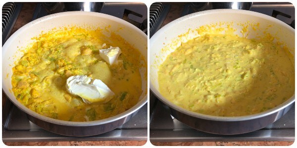 Voeg ten slotte de verse smeerkaas toe en laat deze volledig smelten door te roeren met een houten lepel.