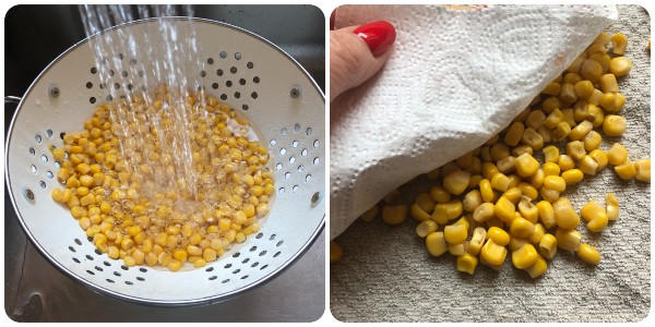 • Spoel de maïs af onder stromend water en dep droog met keukenpapier.