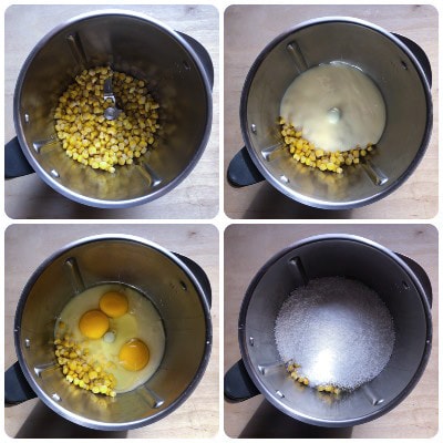 • Doe het vervolgens in de beker van een blender of mixer samen met de gecondenseerde melk, de eieren en de geraspte kokos.