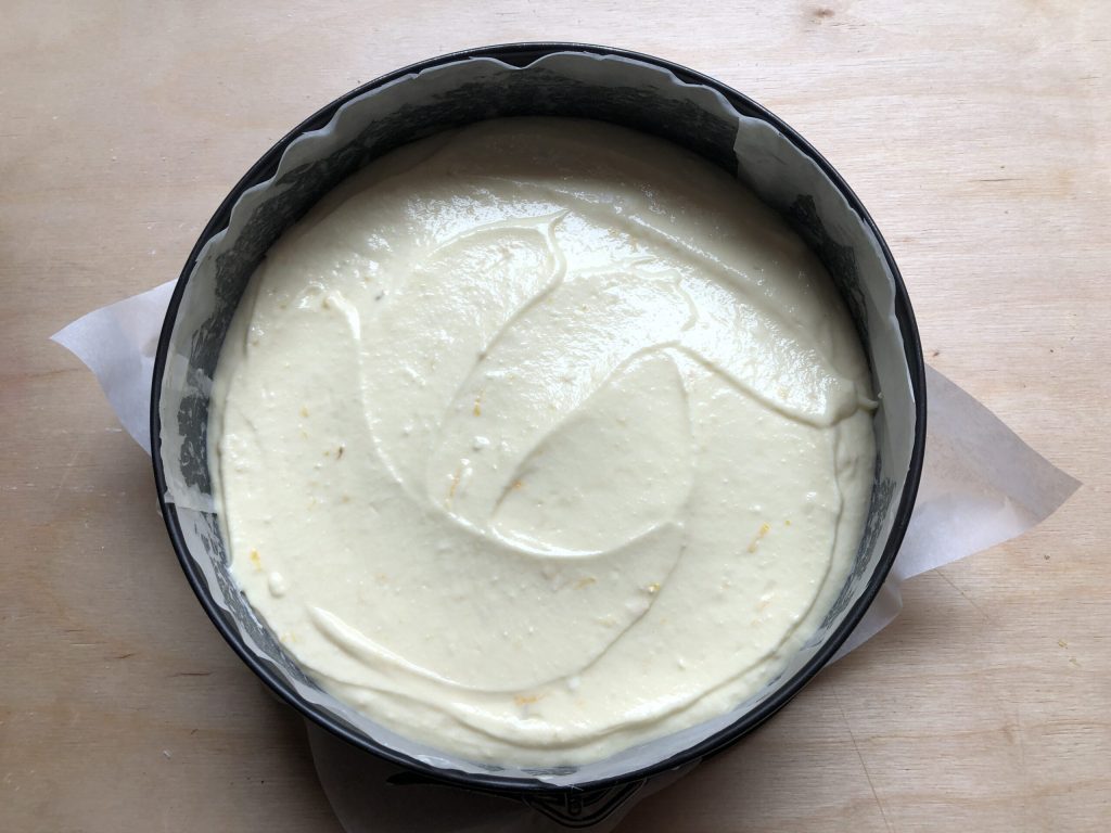 Bak de romige taart met ricotta en citroen in een voorverwarmde ventilatieoven op 180 °C gedurende 45 minuten.