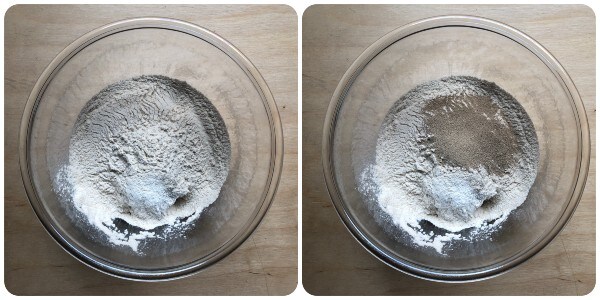 Vorm een bal, plaats deze terug in de kom, dek af met folie en laat rijzen tot het volume is verdubbeld op een warme plaats en beschermd tegen tocht. De rijstijd is, zoals altijd, sterk afhankelijk van de temperatuur van de omgeving en kan variëren van twee tot drie uur.