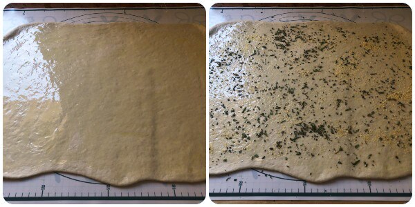 Bestrijk het deeg met olie, bestrooi het met fijngehakte rozemarijn en knoflookgranulaat. Deze laatste is optioneel maar echt perfect.