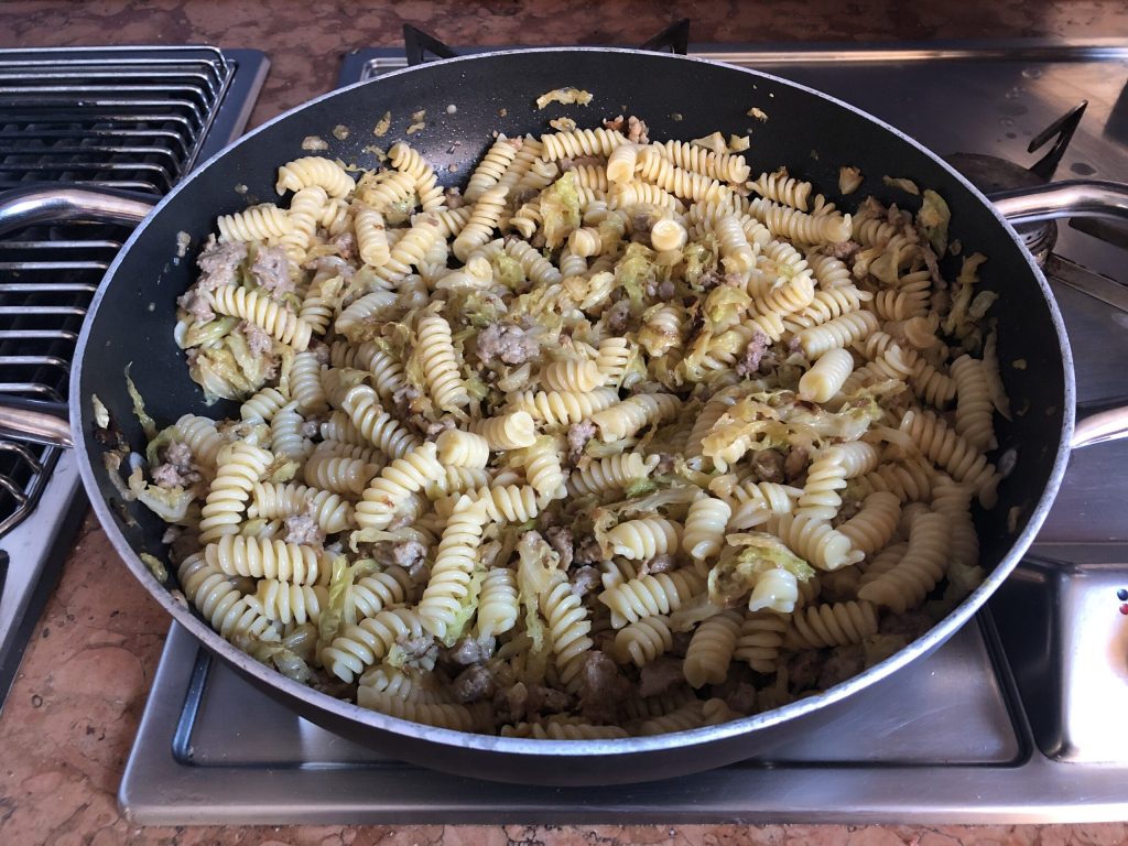 Bereiding van de rustieke pasta met savooiekool en Italiaanse worst