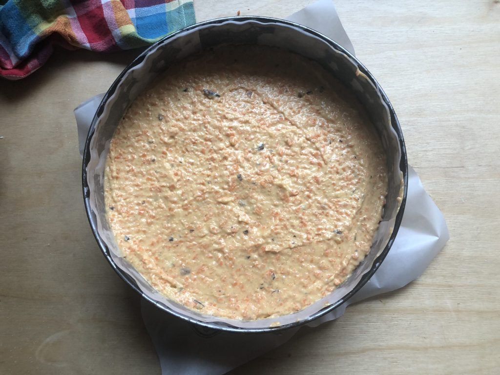 • Giet het verkregen beslag in de eerder voorbereide bakvorm en strijk het glad.