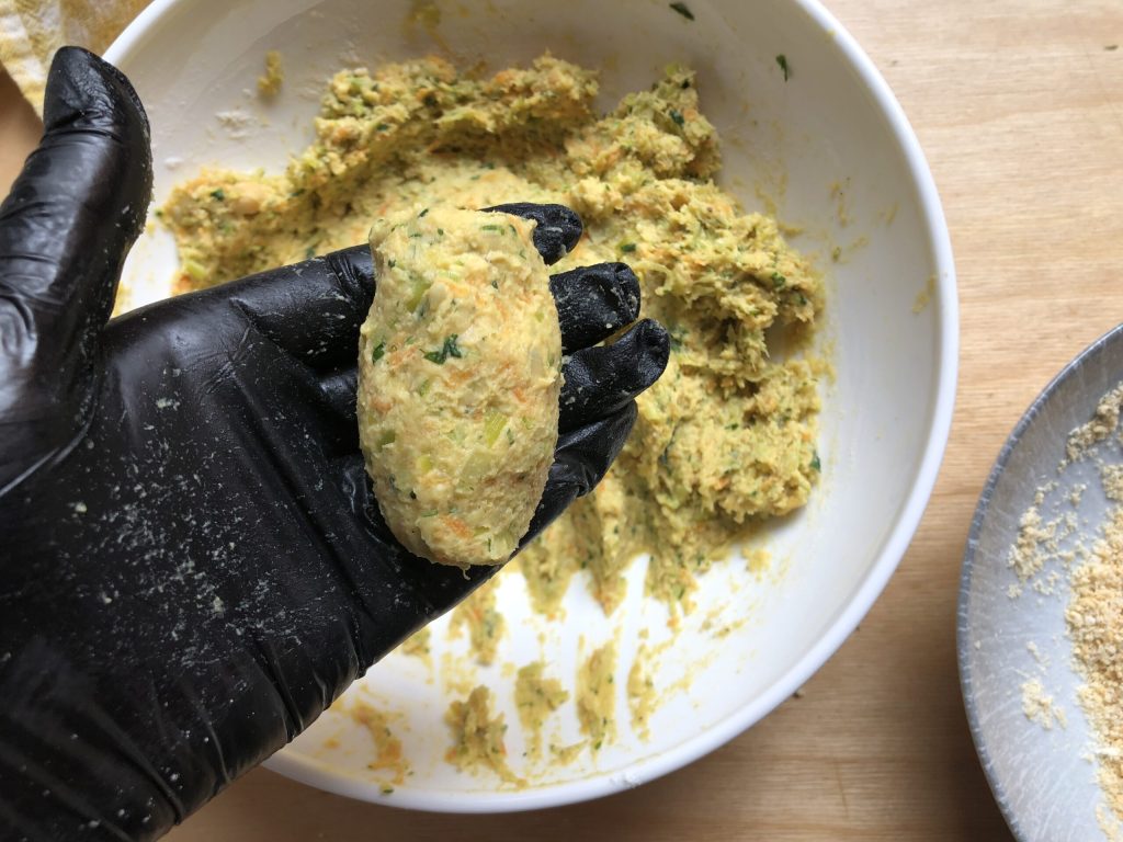 • Neem 45/50 g van het mengsel en vorm er balletjes/kroketjes van.
