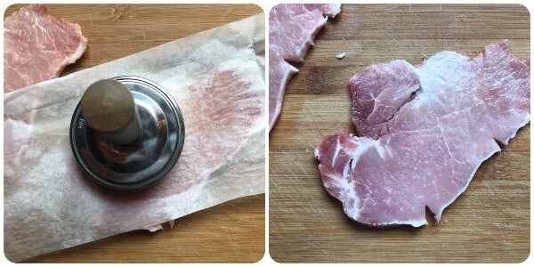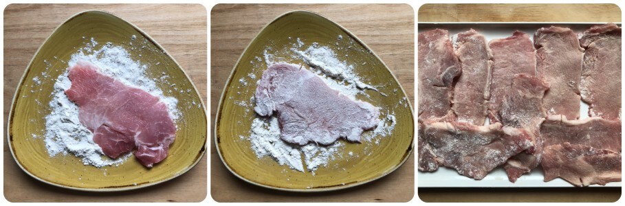 • Verwijder eventuele vetdelen van de plakjes lende, sla ze lichtjes plat om ze dunner te maken en maak een paar inkepingen langs de randen om te voorkomen dat ze krullen tijdens het koken.