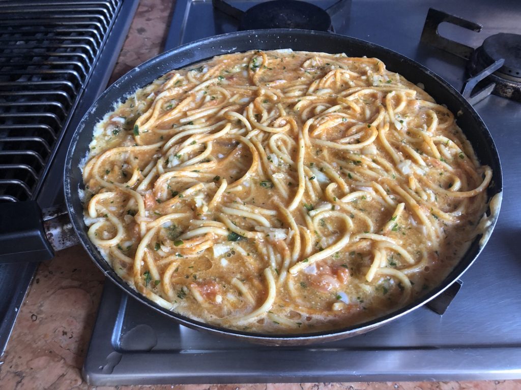 • 250 g spaghetti (gekookt gewogen, zelfs gekruid)