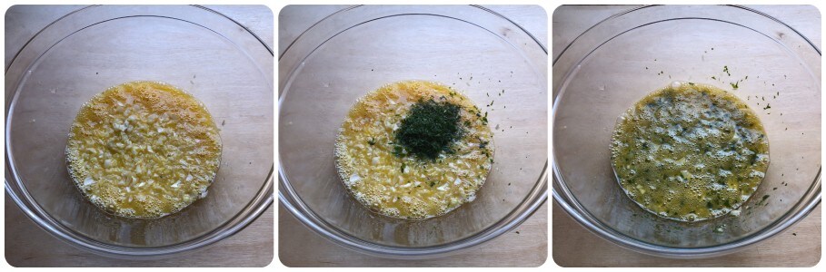 • Voeg de ui en de peterselie toe aan de eieren en meng.