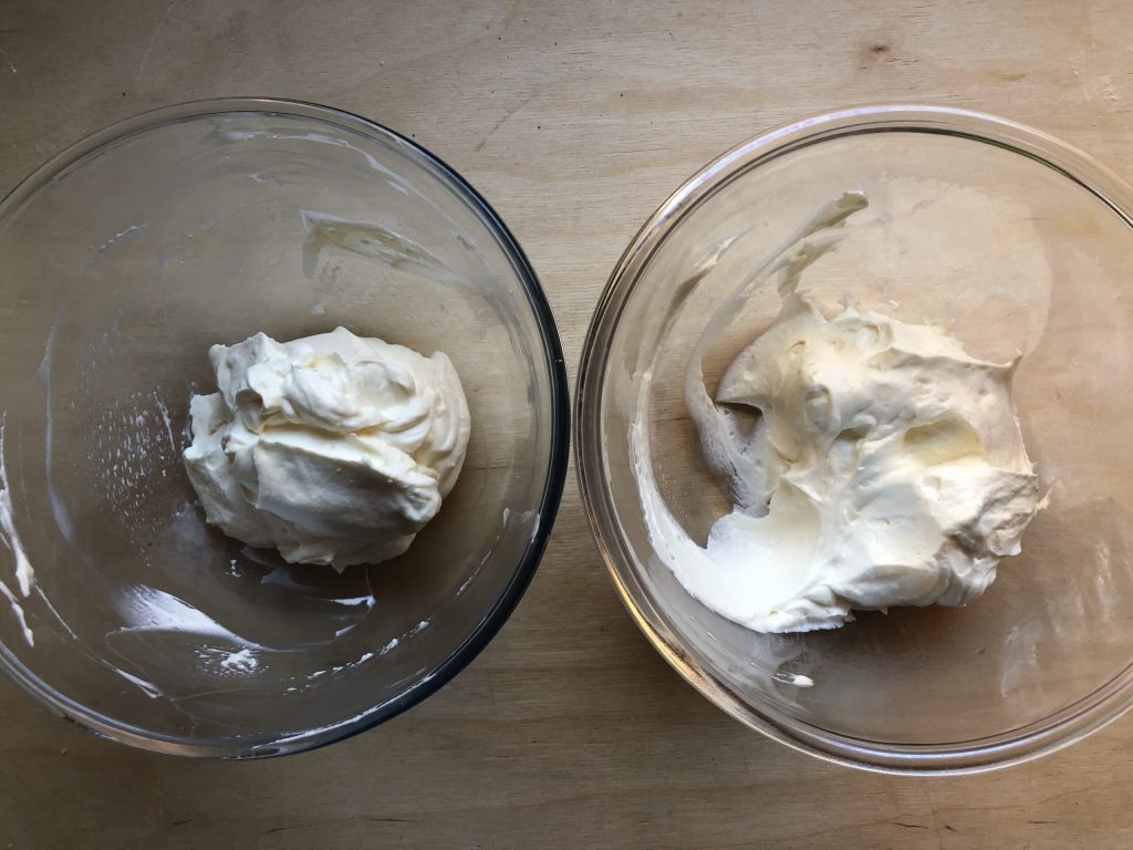 • Voeg vervolgens de mascarpone toe en mix opnieuw met de kloppers tot een homogene crème is verkregen.