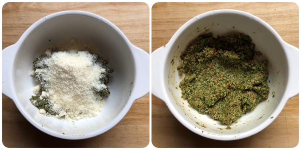 Mix alles tot een grove massa. Ik heb de Bimby gebruikt en meerdere keren op snelheid 7 gemixt, waarbij ik telkens het mengsel naar het midden van de kom bracht.