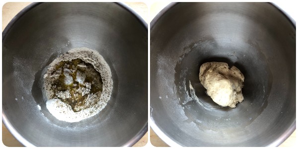 Ik heb het deeg voor deze tomatenhapjes met de keukenmachine gemaakt, maar je kunt ook een andere mixer gebruiken. Je kunt ook met de hand kneden: bewerk de ingrediënten eerst in een kom en vervolgens op het werkblad.