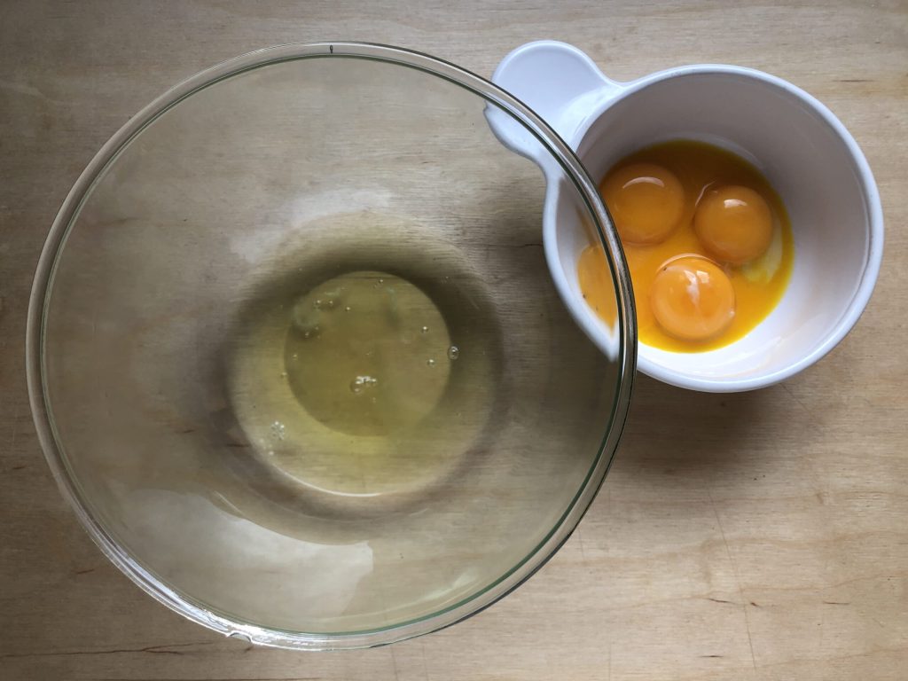Scheiding van de eidooiers van de eiwitten.