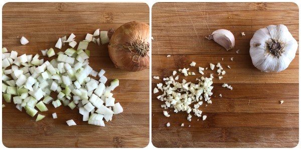 Schil de knoflooktenen, verwijder het centrale deel en hak ze fijn.