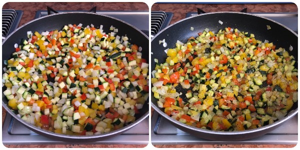 Bak ze op hoog vuur een paar minuten, verlaag dan het vuur een beetje, zet het deksel op de pan en kook verder gedurende 10 minuten terwijl je af en toe roert. Zout en peper naar smaak pas kort voor het einde van de bereiding.