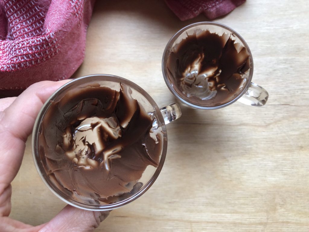 Voor dit recept heb ik de twee espresso’s met het apparaat gemaakt, maar je kunt gerust mokkakoffie gebruiken: het belangrijkste is dat het mooi heet is, zodat de hazelnootroom perfect smelt.