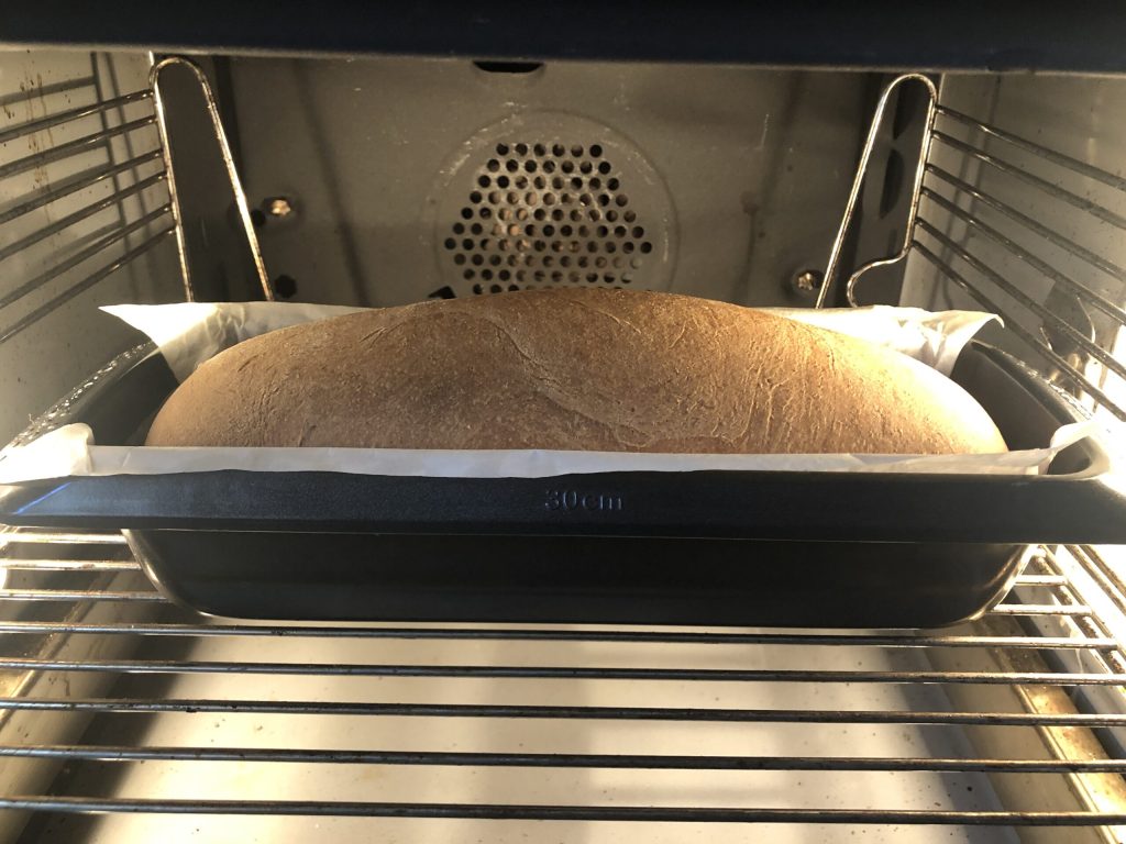 Bedek met een doek en laat opnieuw rijzen tot het deeg de bovenkant van de vorm heeft bereikt.