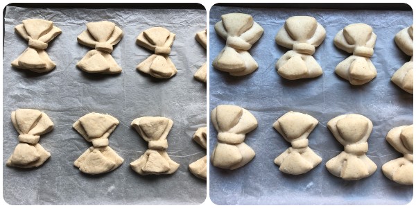 De zachte broodvlokken die ik jullie vandaag voorstel, zijn ontstaan uit een ‘digitale’ inspiratie. Ik had op het web deze mooie vorm gezien die werd gebruikt om koekjes te maken en ik kreeg zin om het met brood te proberen. Het resultaat vond ik geweldig, ook omdat het deeg echt geweldig is. Ik heb zeer zachte, decoratieve en perfecte broodjes gekregen om een elegante touch aan de tafel te geven. Ze zijn ideaal voor buffetten, aperitieven, hartige tussendoortjes of gewoon wanneer je een ander idee in de keuken wilt brengen. De strikvorm maakt ze zelfs op zichzelf al schattig, maar je kunt ze serveren met vleeswaren, kaas, crèmes en alles wat je inspireert. Simpel en effectief: een van die recepten waar je meteen van houdt. Ik heb al de vraag gekregen om ze nog een keer te maken!