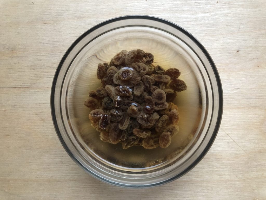 • Week de rozijnen in lauwwarm water gedurende minstens 20 minuten.