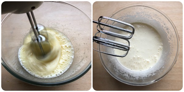 • Klop met de elektrische kloppers de eieren met de suiker tot een licht en luchtig mengsel.